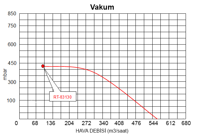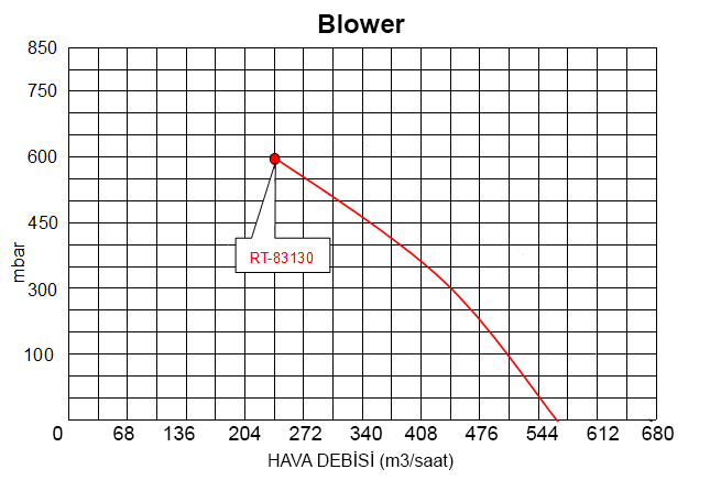Güç = 11 kw Maksimum Hava Kapasitesi = 590 m3/h Maksimum Hava Basıncı = 600 mbar Maksimum Vakum Kapasitesi = 572 m3/h Maksimum Vakum Basıncı = 440 mbar Çıkış : 2 1/2" Çift Fanlı Gürültü Seviyesi = 76 dB Ağırlık = 142 kg